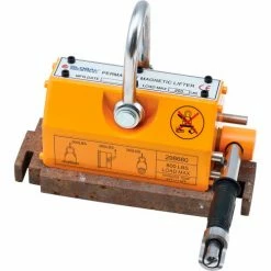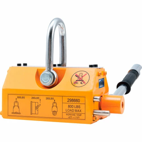 Make lifting easier in the warehouse with the power of industrial magnets. The Global Industrial Lifting Magnet utilizes magnetic forces to elevate steel, iron, and other materials for easy handling and transport. They are ideal for many kinds of material lifting tasks that are performed with a hoist or crane. The lightweight magnet design provides a convenient and cost-effective method of transporting ferrous material. The easy-to-use lever rotation activates and deactivates the magnetic force for convenient and efficient operation control.