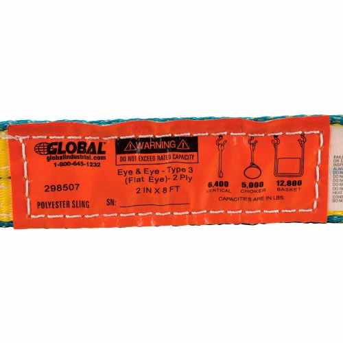 Global Industrial™ Poly Web Sling, HD, Eye&Eye w/ Durable Edge, 8Ft L-6400/5000/12800 Lbs Cap