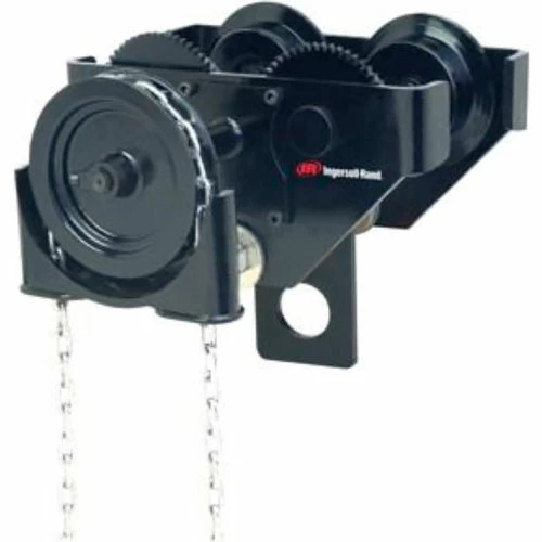 hand geared hook-on style trolley rated for manual or powered hoists having the versatility to fit most types of beams with compatibility to all hoist brands. The 5:1 design factor allows use with both manual or powered hoists. Meets pertinent U.S. (ASME/ANSI and CMAA), Canadian and European standards.