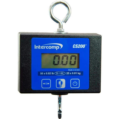 High accuracy, compact digital hanging scales for lower capacity applications. The CS200™ is available in 25 lb (13 kg) to 500 lb (250 kg) capacities and is extremely compact and lightweight, weighing just 1.6 lb (0.7 kg). Includes: Alkaline Batteries, Top Eye Hook and Bottom Hook.