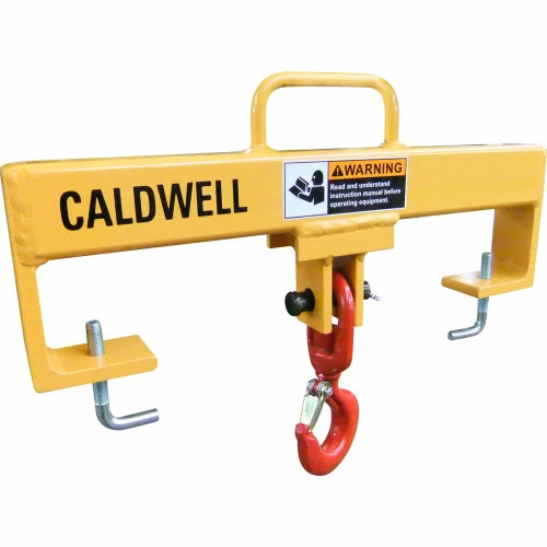 Caldwell Fork Lift Beams are specifically designed to make fork lifts more versatile by providing positive handling of loads otherwise impractical for fork lifts. Easy attachment, no special wrenches or tools needed. Strong, sturdy, all welded construction. East to see, highly visible yellow paint. Made In The USA.