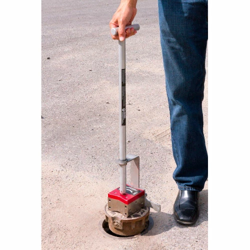 Stop bending over to lift and remove steel items such as cast iron utility and valve box covers or steel parts in your shop. Reduce finger and toe injuries with this lightweight deep reach switchable permanent magnetic lifter. This locking On/Off switchable permanent magnetic lifter moves steel quickly and easily while eliminating the need to bend over, reducing back injuries.