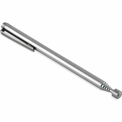 Telescoping Pickup/Pointers. Extends to 25″, 3 lbs. pull. Each has a powerful neodymium magnet in the tip. Great for retrieving small metal objects such as nails, screws, washers, key rings and more. Doubles as a presentation pointer with a handy pocket clip attached.