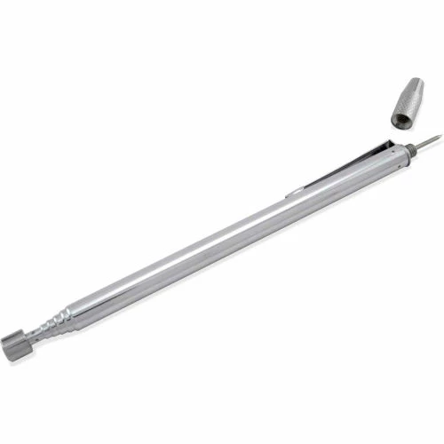 Telescoping Magnetic Pickup/Pointer with Scribe. The top of this tool can be unscrewed to reveal a sharp tip for etching and marking. The other end extends the tool from 6″ to 25″. 3 lbs. pull.