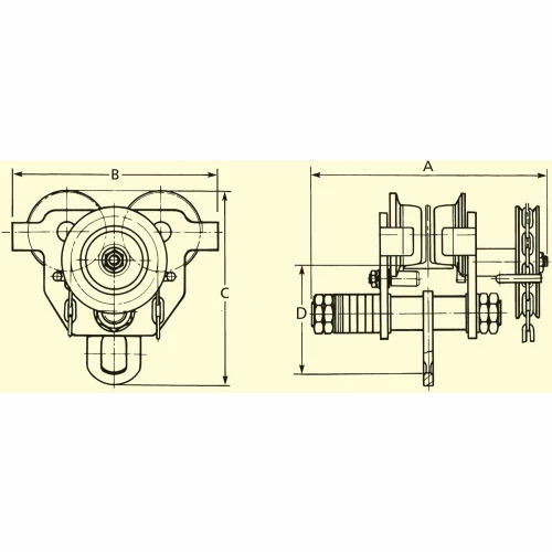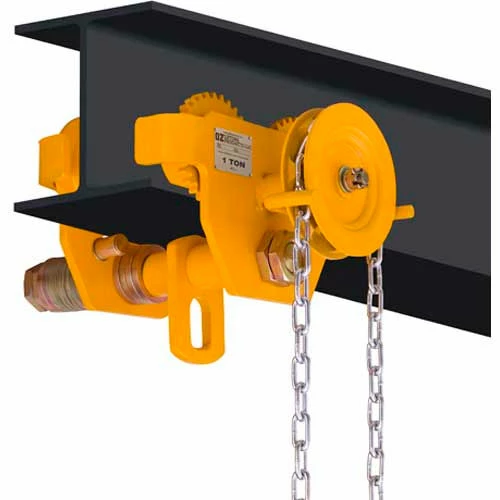 GEARED BEAM TROLLEY – The Geared Beam Trolley is designed for the user who has a precision lift and needs the ability to move slowly across the beam with the least amount of sway, the precision ball bearing trolley wheels make it easy to maneuver heavy loads into position at any given point along the I, S, or W beam. The GBT has anti drop plates, double baked enamel paint, with individual test certifications, and serial numbers for complete traceability.