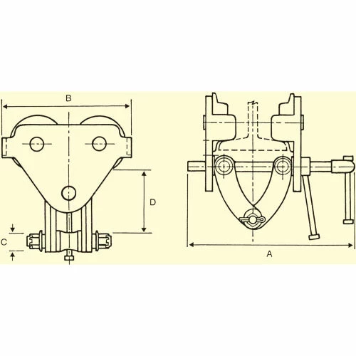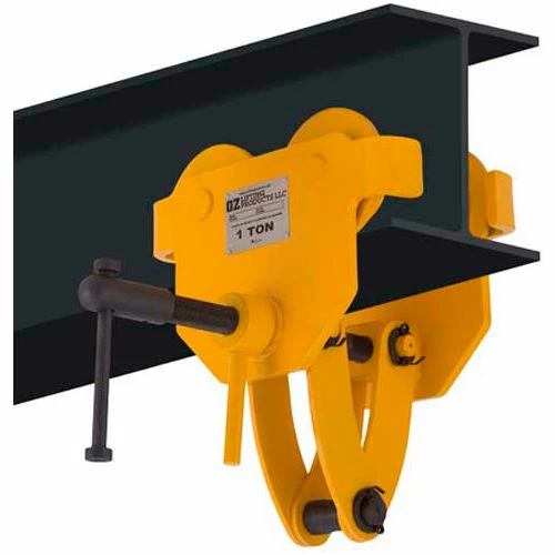 BEAM TROLLEY WITH CLAMP – This versatile Trolley Clamp Combo gives you the option to roll like a trolley or lock down like a clamp, it’s lightweight, moves super quick from beam to beam, has precision ball bearing trolley wheels, anti-drop plate, durable baked enamel finish, stainless I.D. tag and Individual test certificate and serial number. Each trolley has a lock down screw for added safety, this unique trolley also adjusts to most I, W , and S beams with ease.