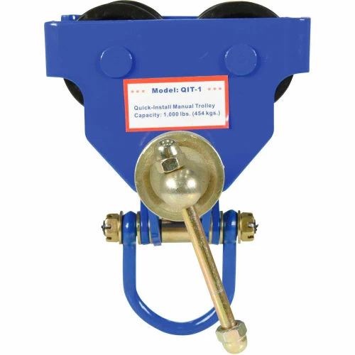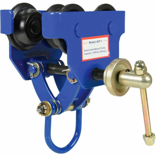 SKU: Vestil WBB53954 Categories: Cranes & Hoists, Hoists & Trolleys, Trolleys Tags: Blue, Manual, Material Handling, QIT-1, Standard Trolley, Steel, Vestil