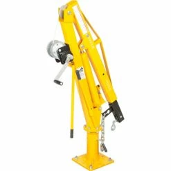 Mounts directly to the bed of truck or trailer for easy product loading/unloading. Crane rotates 360 degrees to access items from all sides and telescopic boom extends reach for greater versatility. Steel construction with chip-resistant finish. Lift hook has safety latch. Crane offers a convenient hand crank winch that raises or lowers the lifting hook, while the hand pump lifts the boom. 10-1/2″ x 10-1/2″ base plate has pre-drilled holes for easy mounting.